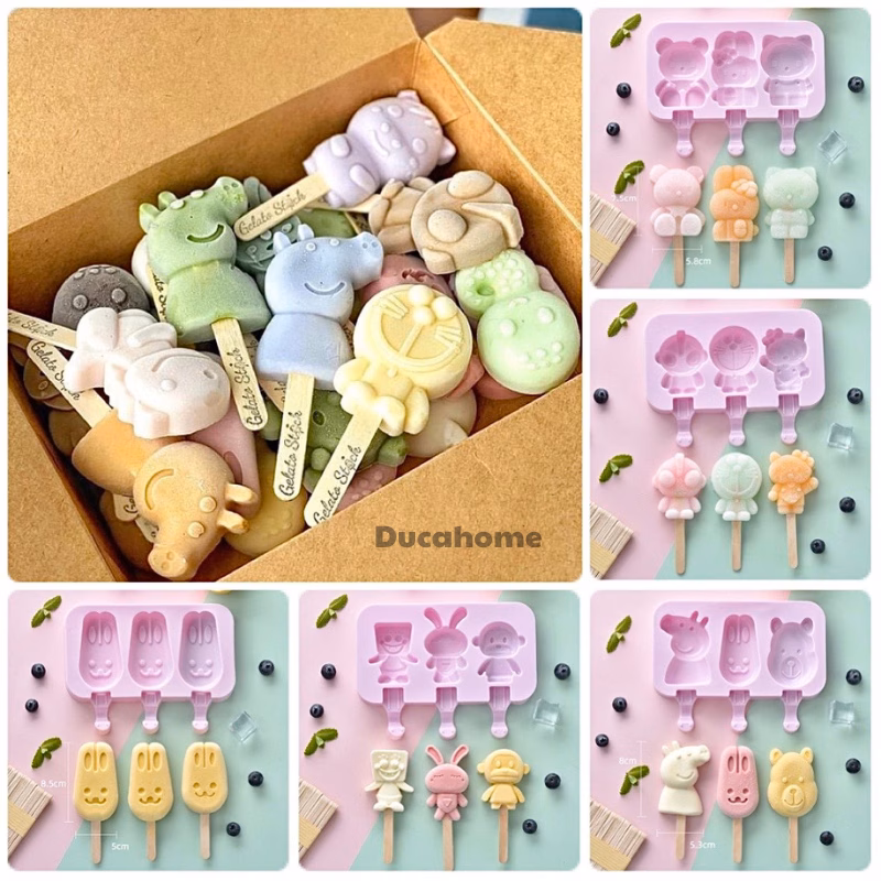 🔥 Khay làm kem khuôn làm kem silicone khuôn kem que bộ đồ dụng cụ làm kem cho bé có nắp kèm que tại nhà hình thú – BULUU đang giảm giá!