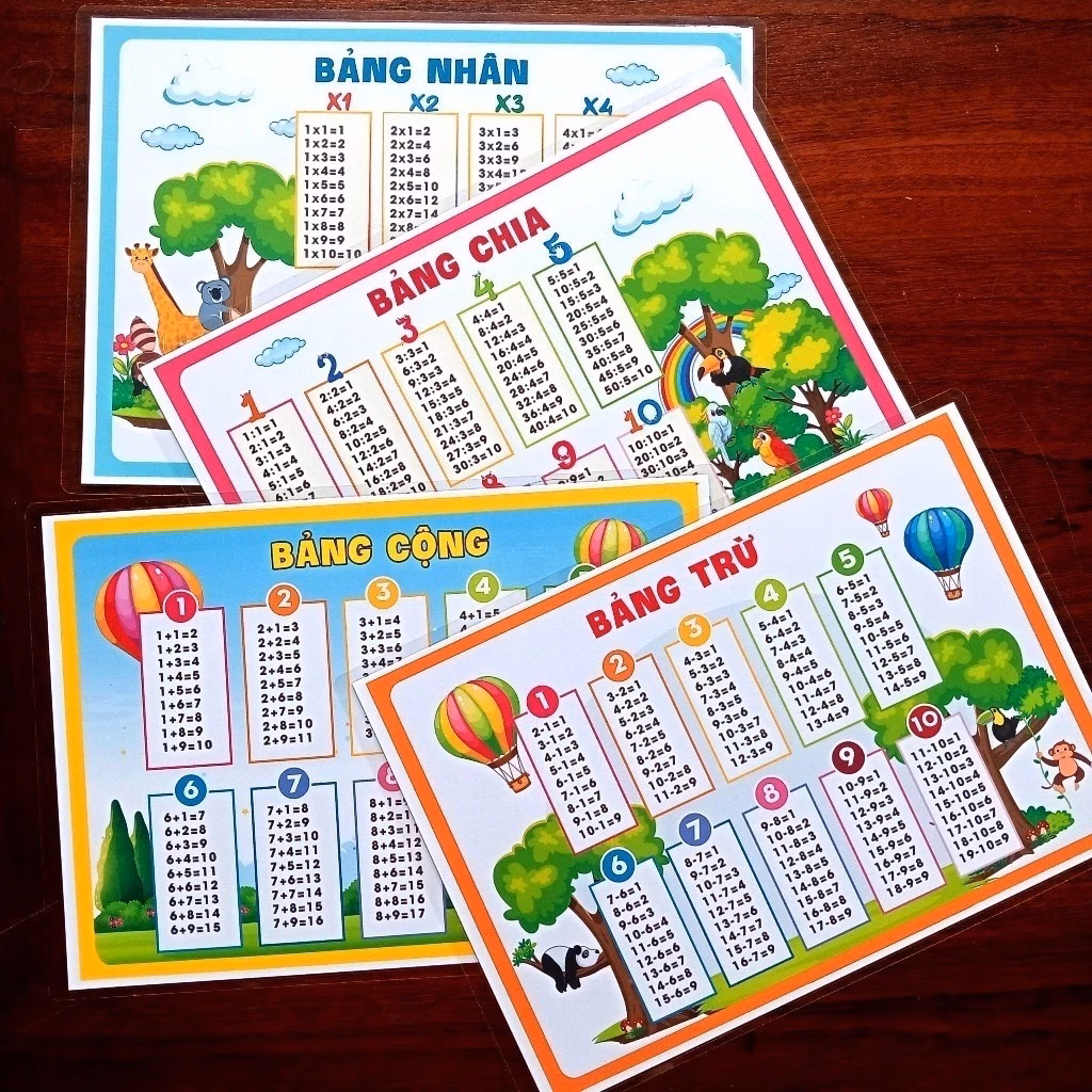 🔥 Bảng cửu chương, Cộng Trừ, Nhân Chia cho học sinh Tiểu học kích thước A4 Ép Plastic đang giảm giá!