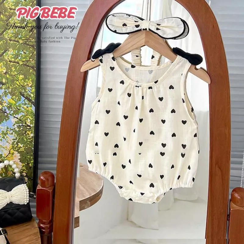 🔥 Body Chip Bé Gái Pig BeBe, Áo Liền Thân Hai Dây Đính Nơ Đen Tặng Kèm Băng Đô Họa Tiết Chấm Bi Dễ Thương Cho Bé Sơ Sinh đang giảm giá!