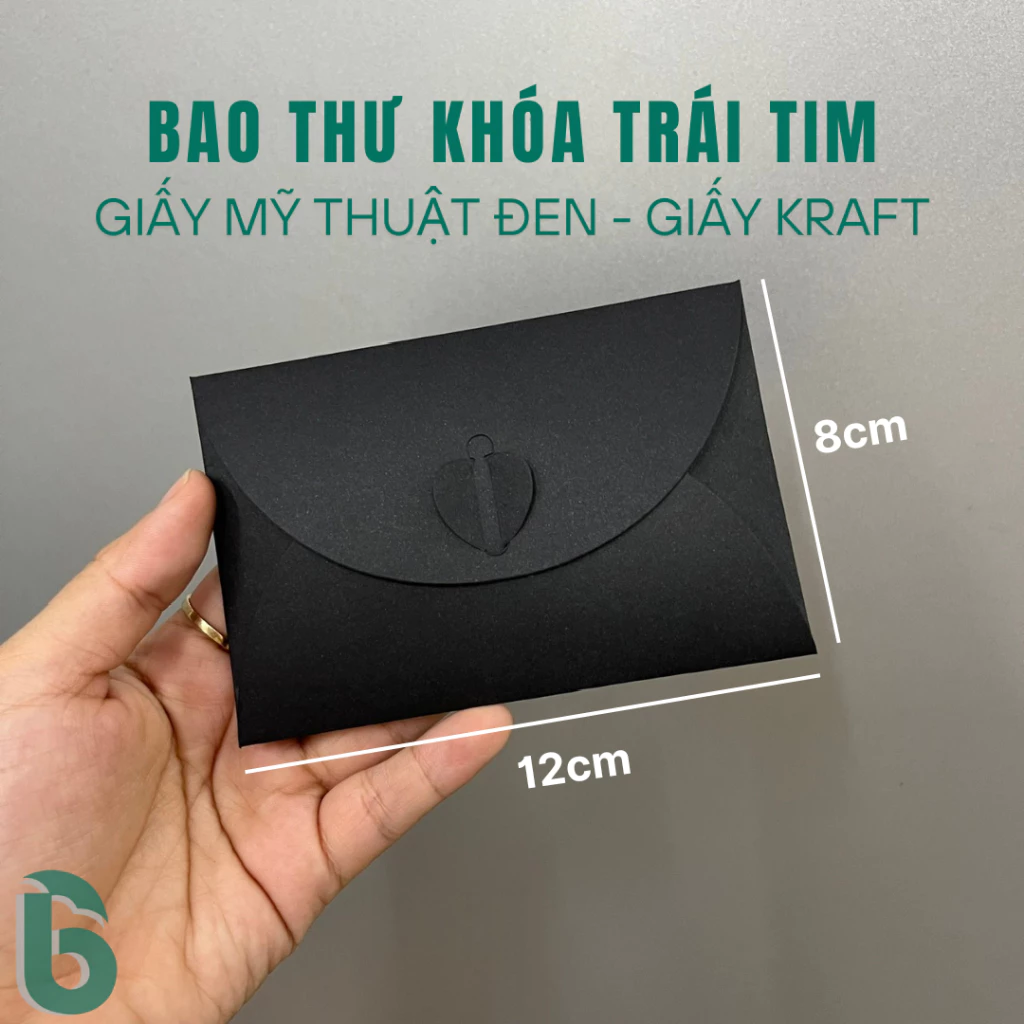 🔥 Bao thư khoá trái tim 8x12cm – Giấy kraft và giấy mỹ thuật đen – Phong bì đựng thiệp, voucher, thư tay handmade đang giảm giá!