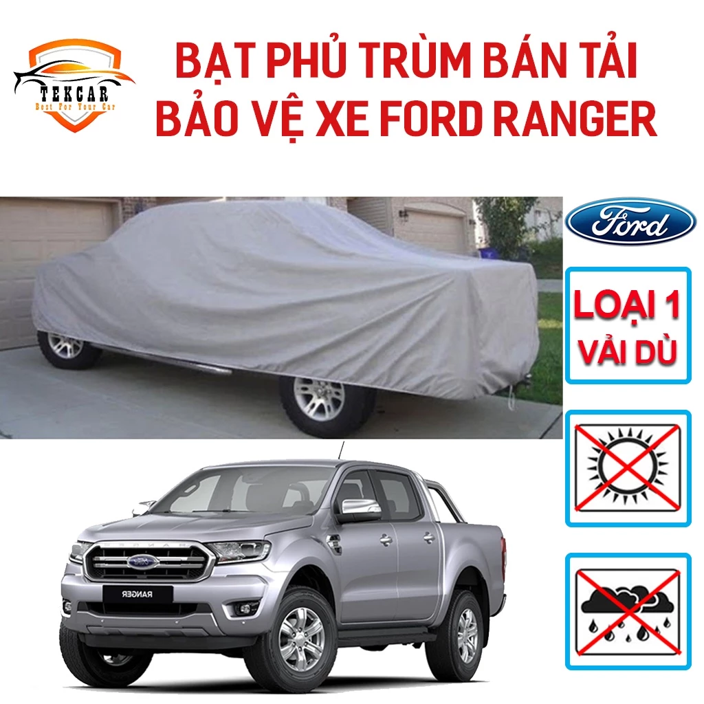 Thông thường, kích thước của bạt phủ xe bán tải Ford Ranger sẽ là khoảng 5300mm x 1850mm x 1800mm. Tuy nhiên, để đảm bảo chính xác, bạn nên kiểm tra lại kích thước của chiếc xe của mình và so sánh với kích thước của bạt phủ xe.