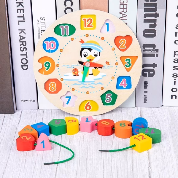 Đồng hồ gỗ kết hợp xâu dây cho bé không chỉ mang lại vẻ đẹp thẩm mỹ mà còn giúp kích thích sự sáng tạo và tư duy của trẻ. Sản phẩm này là một món quà tuyệt vời cho bé yêu của bạn.