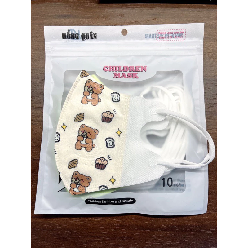 🔥 [Trẻ em] 50 Chiếc Khẩu Trang Lụa Trẻ Em 5D Hồng Quân Họa Tiết Gấu Bánh Mì Cho Bé Từ 1 Đến 6 Tuổi đang giảm giá!