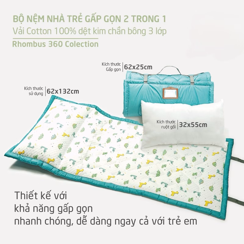 Bạn có thể mua Bộ nệm gối gấp gọn 2 trong 1 cotton chần bông siêu mềm size 60x130cm cho bé đi học mầm non tại đây.