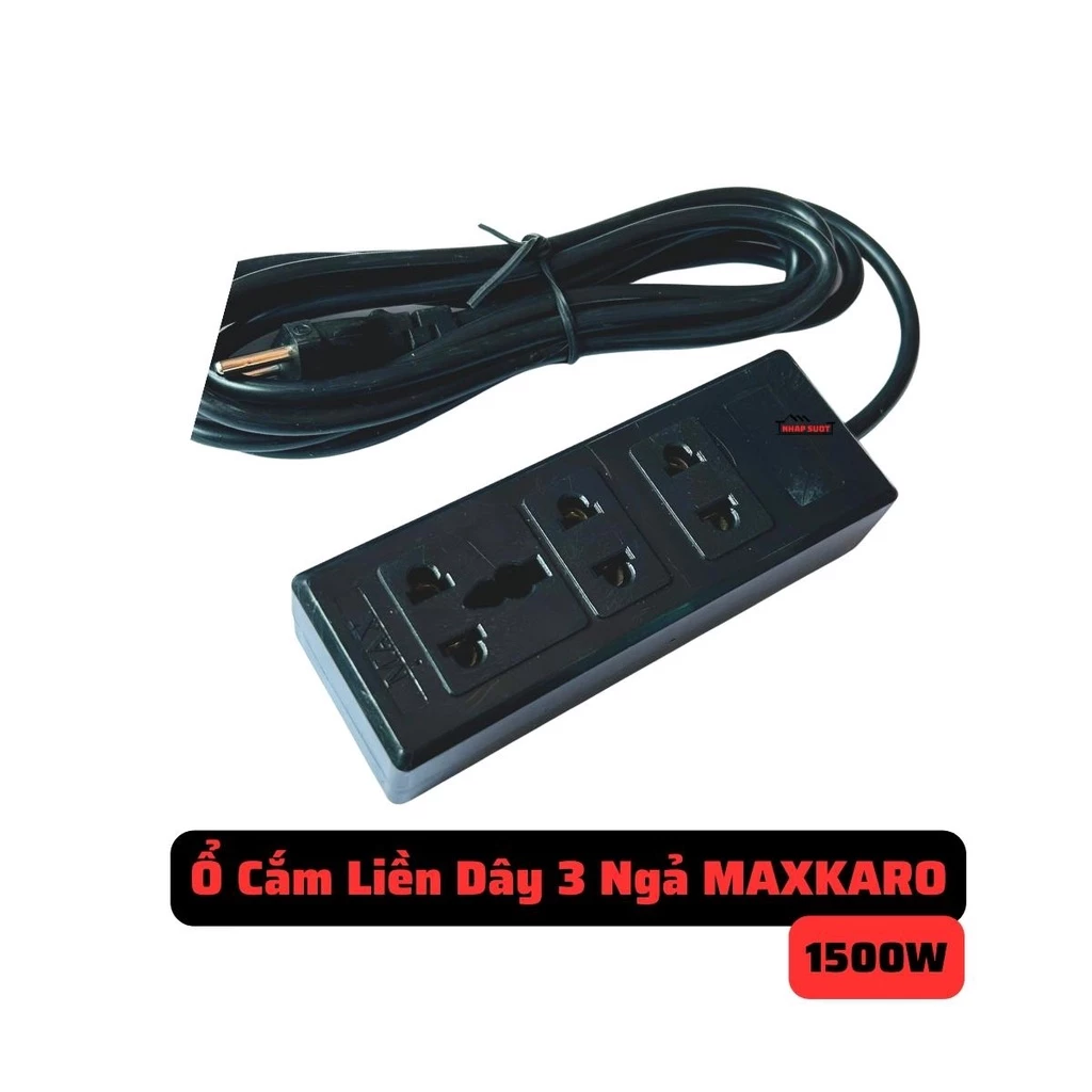 🔥 Ổ cắm điện liền dây Maxkaro 3 chỗ cắm, màu đen, chịu tải 1500w, dây dài 3m, 5m đang giảm giá!