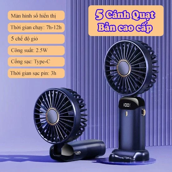 🔥 Quạt Tích Điện Mini Cầm Tay, Quạt USB 5 Chế Độ Gió Linh Hoạt Màn Hình Kĩ Thuật Số Hiển Thị Phần Trăm Pin đang giảm giá!