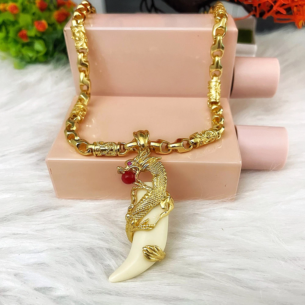 🔥 Dây chuyền nam trang sức vòng cổ trúc rồng kèm mặt nanh rồng dây chuyền titan mạ vàng 18k đang giảm giá!