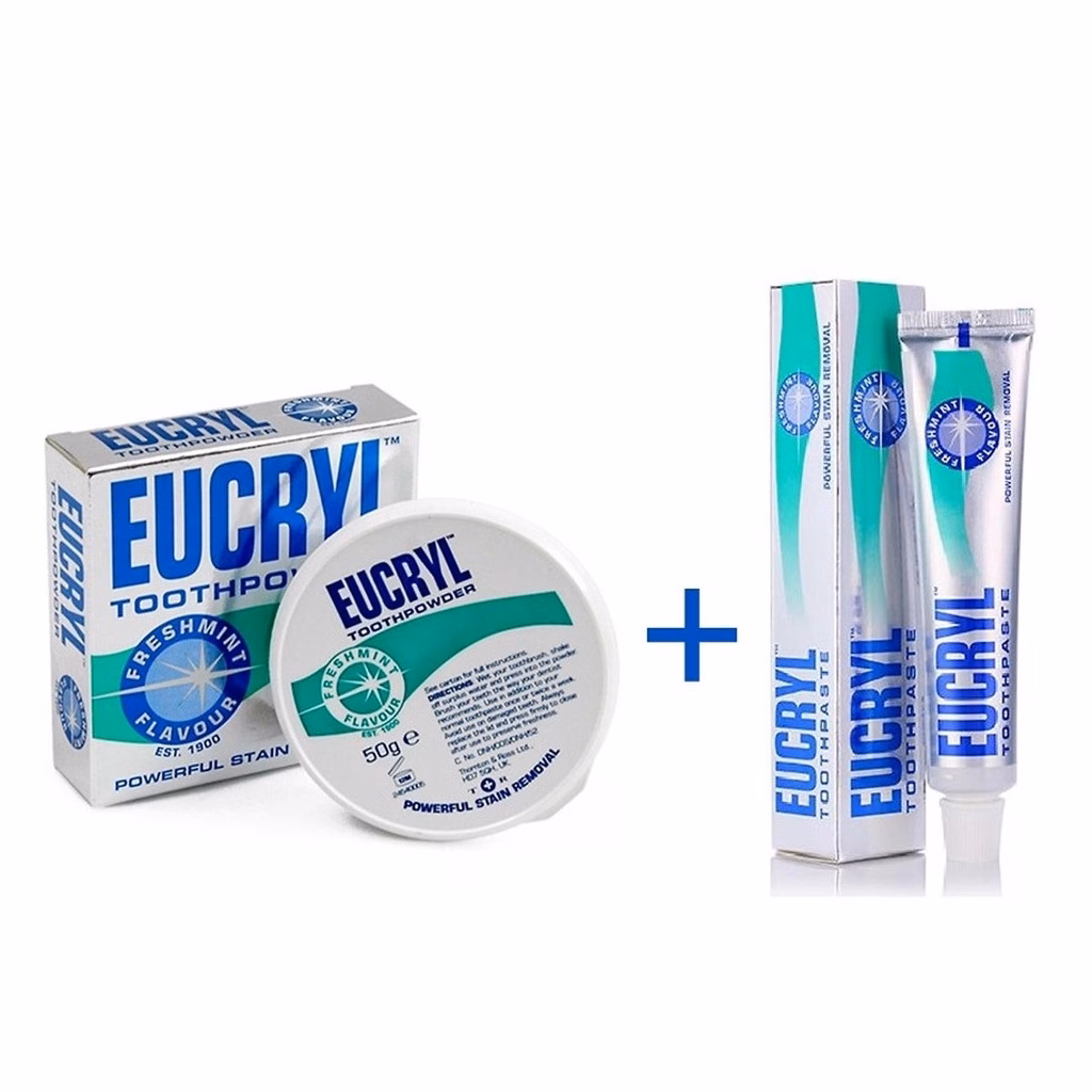 🔥 Combo Bột Tẩy Trắng Răng + Kem Đánh Răng Làm Trắng Răng Hương Bạc Hà EUCRYL Tooth Paste Freshmint đang giảm giá!