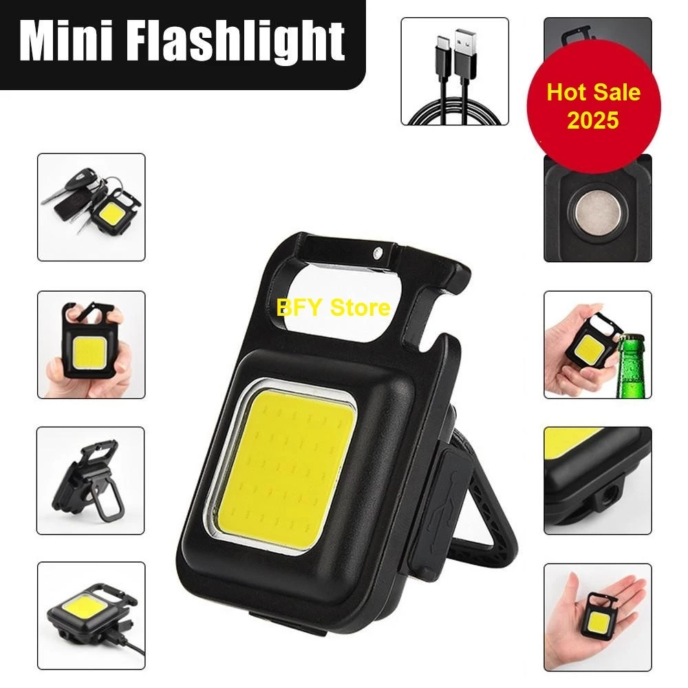 🔥 Đèn pin móc khoá COB siêu sáng có thể sạc lại Type C Chống nước Ngoài trời Cắm trại đa năng đang giảm giá!