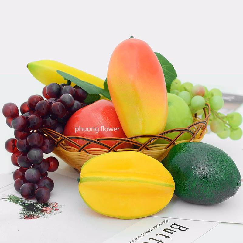 - Quả giả nhựa dạng trái cây: như chuối, táo, cam, xoài, lê, đào, lựu, chanh, hồng, khế…